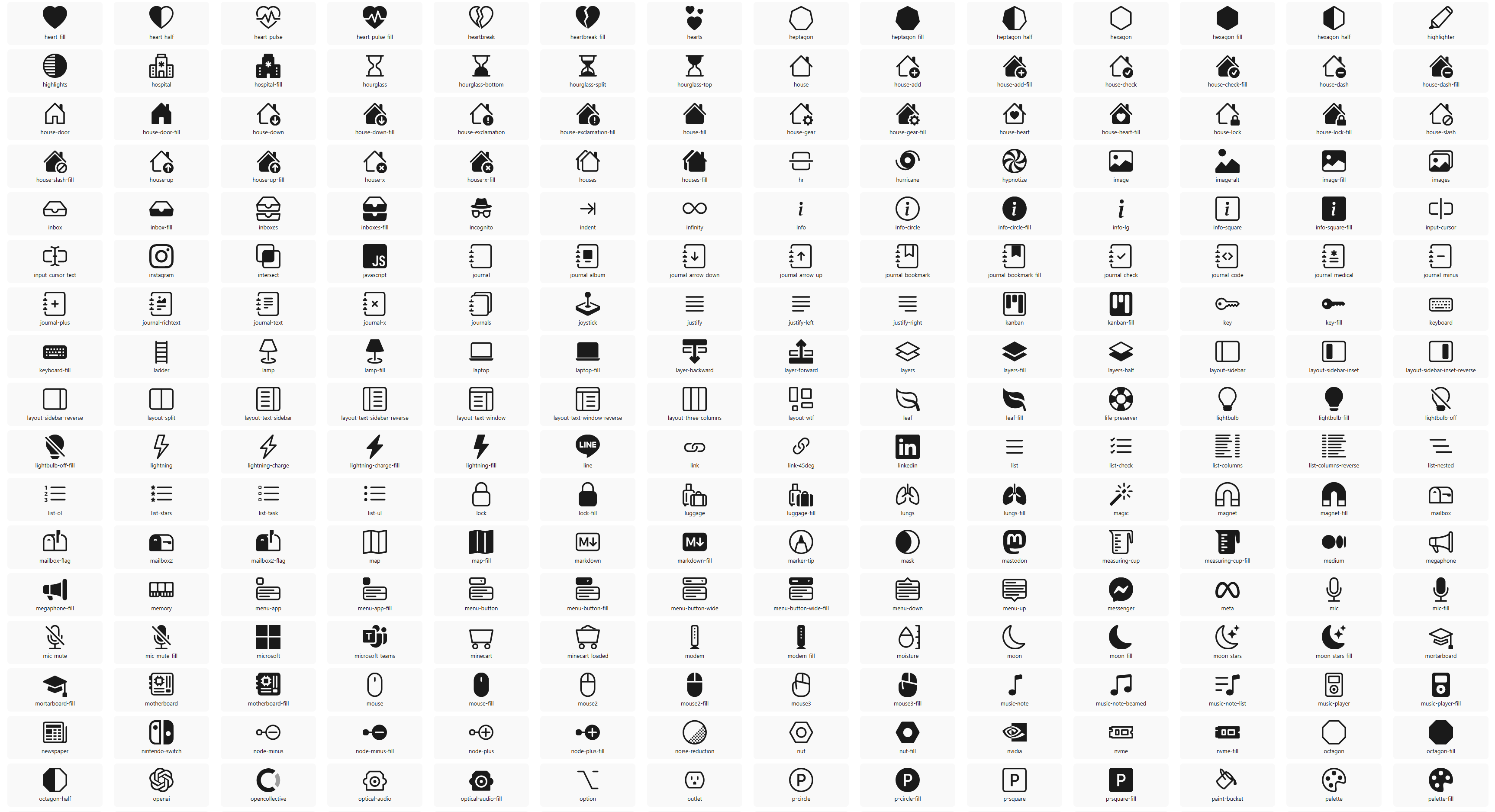 <i class="bi-heart" style="height: 2rem; width: 2rem;"></i>The package includes the generated CSS - with both CSS variables and class names referencing the CSS variables as SVG masks.